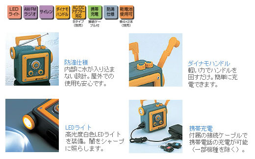 災害時には正確な情報を早く知る事が重要です。実際、過去の例でも一番に役立ったのがラジオだと被災者の多くが語っています。ラジオは消費電力がとても少ないうえ、現在最も電波が行き届いているマスメディアでもあります。この商品は災害時にラジオ(AM/FM)として情報の収集ができるほか、次のような多くの機能を備えています。