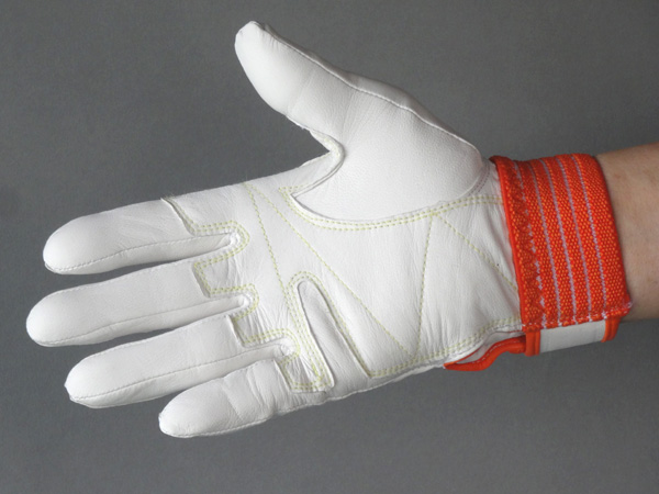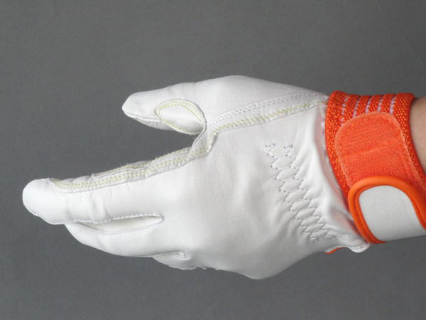 手の平の充てに丈夫なケブラー(アラミド繊維)糸を使用していますので、今までのように縫製が切れて充て革の部分がめくれる心配がありません。耐久性を求めるならこのモデルがお勧めです。 立体裁断加工。