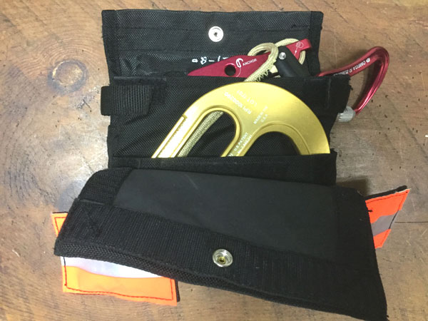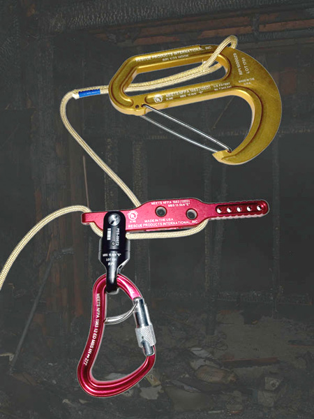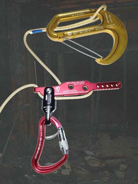 Firefighterの活動は常に危険が伴います。ニューヨーク市消防局の教本にはRITが持たなければならない装備のひとつに脱出用のロープが定められています。Phoenix Escape Systemはもしも…の際に隊員の命を守る必須装備です。本製品を F/R Harness(Bottom)に装着する事で隊員の緊急脱出に使用します。Escape Systemには強度と耐熱性を兼ね備えたテクノーラロープのほか大型フックと降下装置がコンパクトに収納されています。