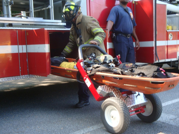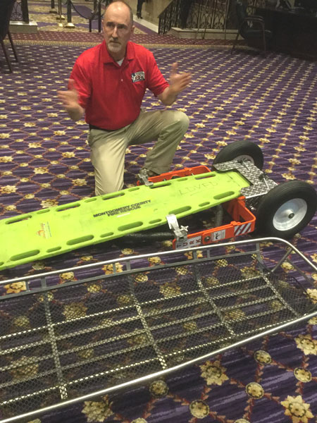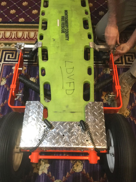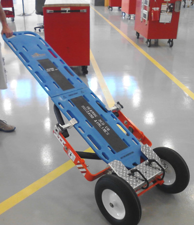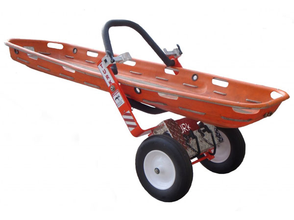 多くの災害現場で使用されているバスケット担架やバックボードによる搬送には少なくとも2~4名の人員が必要です。しかしながらTURKを使用すればたった一人で搬送する事が可能です。更にTURKを使用すれば大小様々な資機材も一度に目的地まで搬送してくれます。現在ご使用のバスケット担架がご使用いただけます。